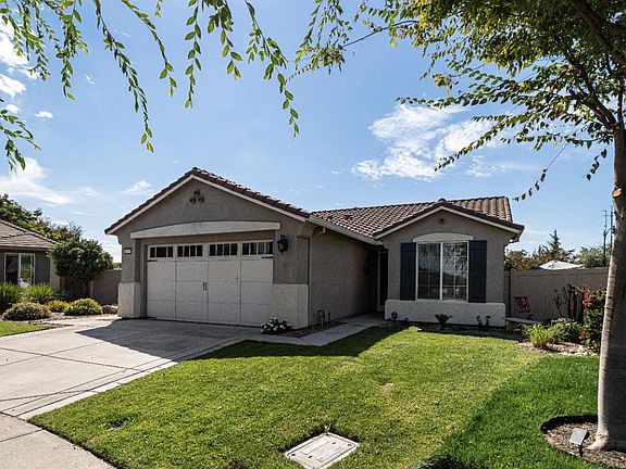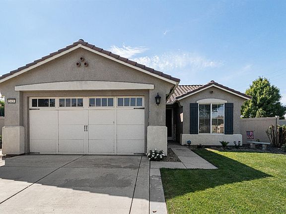 Charming Harpswell model with a pool & large lot!! End of cul-de-sac pie-shaped lot (7,694 sf) with inground Pebbletech pool, sheer descent waterfall with stacked-stone face, covered patio with lighted ceiling fan, big sideyard with 2nd patio & shed, 5-panel paid-for solar system is for the pool only, house has new LVP flooring, whole house fan, entry has wainscotting & crown molding, kitchen features stone counters, gas cooktop, SS fridge stays, island with stainless sink, breakfast bar & 2 pendant lights and tile floor, primary bedroom includes walk-in closet, 2 sinks, no-lip (roll-in) shower with bench seat & tile floor, finished & painted garage with opener and wire shelving. Come take a look at this sharp home!! Woodbridge is a 55+ active adult community with a clubhouse, pool, softball field, putting green, tennis court, pickle ball courts & much more.