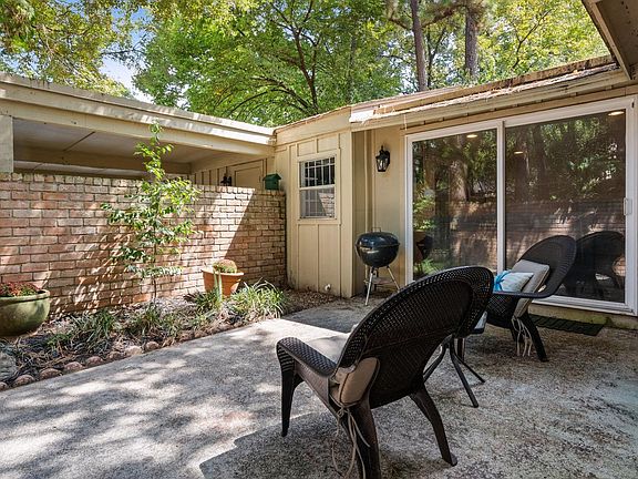 Beautifully updated townhome on a wooded greenbelt lot. Large corner unit. Fantastic location in the front of the Woodlands - adjacent to the TW CC Tournament course, easy access to walking/biking trails & walking distance to Market Street & Town Center for shopping, restaurants & concerts. 2 spacious patios -private courtyard entrance & fenced back patio. Travertine floors greet you in foyer & continue throughout the first floor. Great Room has high ceilings & wood burning fireplace and is open to the formal dining. Kitchen has an abundance of cabinets, granite countertops, pantry, SS Appliances & a breakfast bar. Kitchen is open to breakfast room & den/study. Plus, there is a bonus room w/ French Doors that could be a sunroom, game room or study. Primary bedroom is on the 1st floor with updated bathroom with double sinks & oversized shower. 2 Bedrooms and full bath (also updated) upstairs. Updated windows, new carpet, fresh paint & updated baths are just a few features in this home.