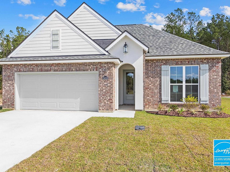 NEW CONSTRUCTION on CORNER LOT in Eagles Gate! Take advantage of up to $7,464 in incredible incentives on this stunning Riley Heritage floor plan by Manuel Builders. Offering 4 bedrooms, 2 baths, and 1,816 sq. ft., this open, split layout blends style, comfort, and functionality. Inside, the living room’s cathedral ceiling and wall of windows fill the space with natural light, while the patio—just off the living area—creates the perfect spot for entertaining. The gourmet kitchen showcases custom-built cabinetry with soft-close doors, premium hardware, a freestanding gas range, stainless steel appliances, 3cm granite countertops, stylish backsplash, pendant lighting, an undermount sink, and garbage disposal. The private master suite offers a spa-like feel with dual vanities, framed mirrors, 3cm granite countertops, custom cabinetry, and a spacious walk-in closet featuring built-in shelving and cubbies. Exterior highlights include a fir wood front door, architectural shingles, tankless water heater, front landscaping, and a covered back patio with an electrical outlet for tv-mounting. This ENERGY STAR Certified home means lower utility bills and more comfort. Eagles Gate residents enjoy top-rated schools on the same street, plus quick access to Juban Road Shopping Center, dining, and entertainment. Experience the tranquility of Eagles Gate—schedule your showing today!