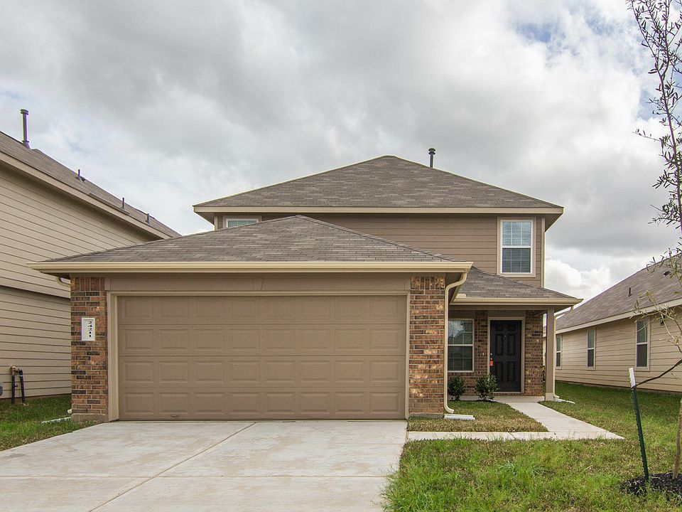The Darrel III Plan delivers space and flexibility with a thoughtful two-story design. The first-floor primary suite offers added privacy and includes a walk-in closet for everyday convenience. An open-concept layout connects the living room, kitchen, and breakfast area, creating a natural flow for daily life. Upstairs, you'll find three generously sized bedrooms and a versatile flex room—ideal for a home office, playroom, or media space. A fenced backyard, two-car garage, and sprinkler system complete the home. All homes are SimplyMaintained for a $100 monthly fee covering front and back yard lawn care and exterior pest control.