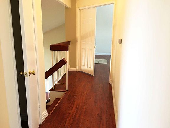 Upstairs, the primary suite includes a walk-in closet and a beautifully upgraded bathroom with dual quartz sinks. Two additional large bedrooms share a full bathroom, and all upstairs areas including the stairway feature new, high-quality laminate flooring.