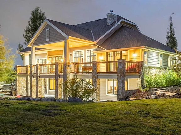 Set in the prestigious community of Swift Creek Estates, this spectacular custom home offers 5 bedrooms, 3.5 bathrooms, and over 6,300 sq ft of total developed living space on a beautifully landscaped lot with sweeping south and west mountain views. The main floor showcases a dramatic barrel-vaulted foyer, private office, formal dining room, and living room with 12' coffered ceilings, floor-to-ceiling windows, and a striking stone fireplace. The gourmet kitchen features commercial-grade appliances, custom maple cabinetry, granite countertops, slate flooring, and a sink overlooking the backyard. A bright breakfast nook, mudroom with custom millwork, and an exceptional laundry room with extensive cabinetry and organization add everyday function. The primary suite is a true retreat with French doors leading to the rear deck overlooking the mountains. The luxurious 5-piece ensuite includes double vanities, a jetted tub, glass shower, makeup area, and a spacious walk-in closet. Upstairs, two generous bedrooms each feature vaulted ceilings and walk-in closets. A full bathroom and a large family room loft with vaulted ceiling complete the upper level. The fully finished walkout basement offers two additional bedrooms, two full bathrooms, a large recreation/games room with wet bar and fireplace, plus a secondary kitchen and storage. Additional highlights include an oversized triple garage, radiant in-floor heating on the lower level, central A/C, whole-home audio, Cat-5e wiring, and alarm system. Recent updates include fresh interior paint (2025). Professionally landscaped for minimal maintenance, this property combines stunning architectural details with modern comfort in one of Springbank’s most desirable communities—just minutes from Calgary’s amenities.