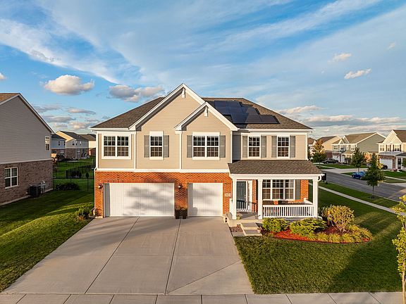 ***This home is as efficient as it is beautiful, with fully paid-off solar panels and a transferrable warranty to the new owners, providing little to no electric bill.*** Welcome to this better-than-new home in the sought-after Hanover Estates community, set within the highly desirable Lincoln-Way schools. Just six years young, this residence offers the largest model Hanover has to offer with five spacious bedrooms, including a main-level bedroom perfect for related living or guests. The open concept design showcases luxury vinyl plank flooring throughout the main level, curved archways, custom woodwork, and an inviting electric fireplace that brings warmth to the space. The heart of the home is the upgraded kitchen, complete with a farmhouse sink, a center island, and generous natural light that floods through every corner. Upstairs, the primary suite is a true retreat, offering a large primary bath and not one, but two oversized walk-in closets. Each bedroom is designed with comfort in mind, creating the perfect balance of function and style for today's living. Set on a prime corner lot, the backyard is fully fenced and features a stamped concrete patio, ideal for entertaining or simply relaxing in your own private oasis. Across from the home, enjoy a scenic grassy area that offers added privacy and a peaceful view, all within walking distance to the community park. The expansive three-car garage, upgraded finishes throughout, and modern efficiency make this property truly move-in ready.