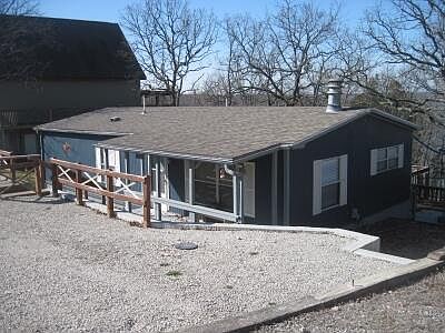 First tier 3 bed 2 bath manufactured home with partial lake view at Pomme de Terre. This home has approx 1056 sq ft of living space. It has 3 bedrooms, 2 baths, living room, kitchen and utility area.  There is an 8x16 screened porch, a 12x22 open patio and two decks measuring 6x16 and 5x18.This home comes with a guesthouse that has 576 sq ft of living space. It has a bedroom, full bath, kitchen and living area. There is a 8x20 workshop attached. The property features a partial lake view, path to water and a great parking area.  Close to boat launch area.