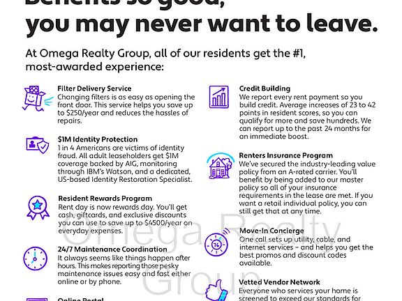 Unlock Your Dream Home: 1-Month Free Rent on Your Second Month! Your Perfect Space Awaits Lease Today! Year Lease - Quarterly pest control included - No smoking Pets Welcomed! - No breed restrictions - $200 one-time fee per pet - $10 monthly charge per pet Schedule a tour or Apply today! - All occupants age 19 and over must apply - $45 application fee per person for credit and background check All Omega Realty Group residents are enrolled in the Resident Benefits Package (RBP) for $50.00/month which includes liability insurance, credit building to help boost the residents credit score with timely rent payments, up to $1M Identity Theft Protection, HVAC air filter delivery (for applicable properties), move-in concierge service making utility connection and home service setup a breeze during your move-in, our best-in-class resident rewards program and much more! More details upon application. Omega Realty Group