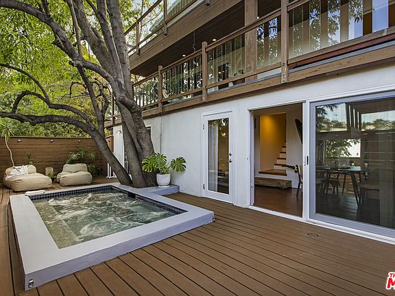 Tucked away just above Hyperion Avenue, where Los Feliz meets Silver Lake in the heart of Franklin Hills, this tranquil multi-level home offers the perfect blend of privacy, creativity, and convenience. Nestled among the treetops with sweeping hillside views, this Zen-inspired residence feels like a hidden artist's retreat yet is only moments from the best dining, coffee, and culture of L.A.'s Eastside. The front entry welcomes you with a charming herb garden with drip system, setting the tone for the peaceful ambiance throughout. Inside, the open-concept ground floor features a spacious living area lined with walls of glass that blur the line between indoors and out. The updated kitchen is a chef's delight, complete with built-in refrigerator, Thermador range, and vent hood. A large balcony extends the living space perfect for morning coffee or sunset entertaining among the trees. The primary suite on this level offers a generous walk-in closet and spa-like bath. The second lower floor presents a versatile secondary living space ideal for a media room, studio, or lounge. A guest bedroom, full bath, and a large covered balcony make this level perfect for guests or flexible living. On the third lowest floor, discover a self-contained suite with its own kitchenette, office area, living space, bedroom, and full bath an ideal setup for guests, extended family, or creative work-from-home living. From here, step out to your private backyard oasis: a serene retreat with a plunge pool that doubles as a hot tub, built-in table, and shaded lounge area under a canopy of trees. A separate private entrance makes this level perfect for guest or rental potential.Peaceful yet connected, this hillside haven captures the essence of Los Feliz and Silver Lake living artful, modern, and effortlessly cool. Home features Vivint Security System, nest thermostat, ring doorbell and security camera.