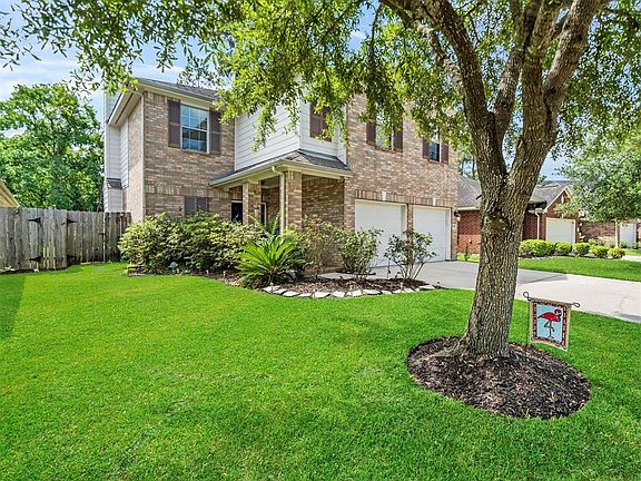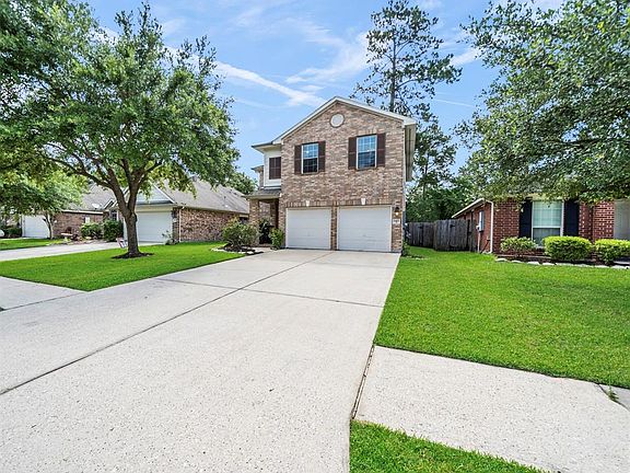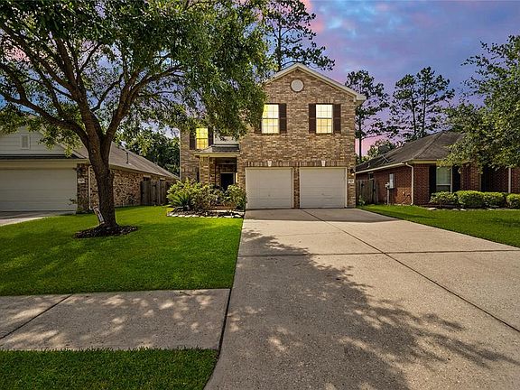 Amazing two story in Spring Trails! Immaculate lawn featuring mature trees. Inviting front porch and two car garage! Easy care flooring sets the tone in the open floor plan with updated lighting and spacious rooms perfect for entertaining! Large, open concept den with gas log fireplace. Beautiful kitchen features an elegant sunny dining area and plentiful cabinetry with undermount lighting. Sparkling stainless appliances include a gas range. All bedrooms are up and the spacious Owners suite features large corner windows and a private bath with dual sink vanity, walk in shower and soaking tub. Spacious secondary bedrooms! Recent paint! Carpeting replaced upstairs. Lush backyard with patio! Zoned to Conroe schools! Enjoy the amenities of a master planned community! Call today!