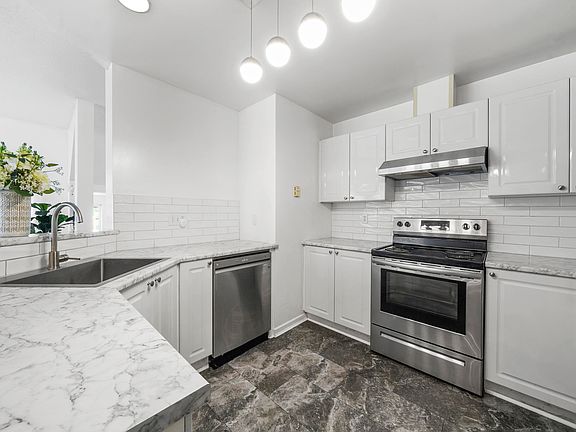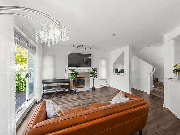 Corner townhomeWood flooringGas fireplaceLarge bright white kitchenBreakfast barWalk-in closetPrivate patio