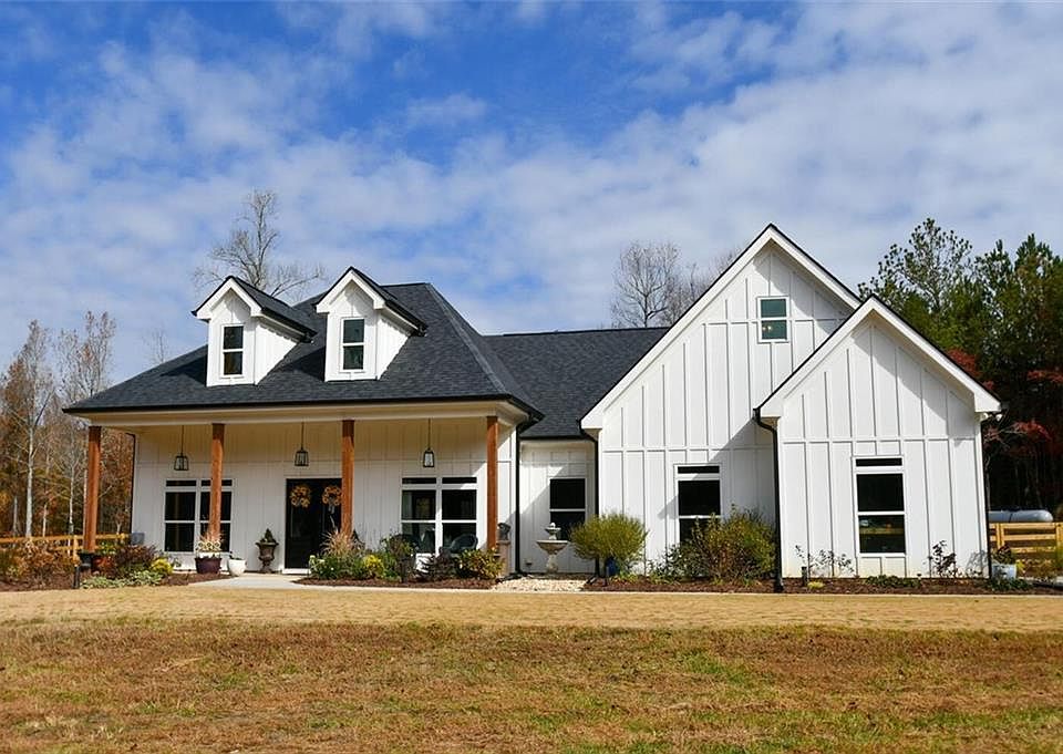 The farm and home are ready, all the work has been completed! Home is less than 2 years old. The property is newly landscaped and fenced for small and large animals. More acreage for free roaming and trails. A traditional 4 bedroom 2.5 bath ranch farmhouse with all of the modern conveniences. All of your essentials - stove, gas logs, heat, hot water, and generator are connected to a 350 gallon propane tank so you will never be without them. Master Bedroom is finished with a massive walk-in closet and en-suite bathroom with tiled shower, soaking tub, double vanity and separate toilet closet. Open concept floor plan displays a clean, fresh kitchen with farmhouse decor, apron front white sink, shiplap and wood plank trim, clean white subway tiles,white wood cabinetry, finished with sleek stainless steel appliances. Two additional main floor bedrooms share a full bathroom, 4th bedroom is upstairs with a half bath. Laundry room is conveniently located in the hallway for everyone to access. Do not miss this great opportunity for a private homestead and mini farm on almost 13 acres in Dawson County! Land is in a 10 year conservation that began 2022.