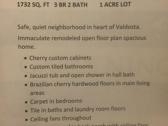 LOCATION, LOCATION, LOCATION...BRICK HOME located in a BEAUTIFUL neighborhood in the heart of Valdosta. This home features NEW FLOORING, HUGE OPEN main living area, LARGE kitchen complete with eat-in bar & tons of counter & cabinet space. The largest BA has a separate tub & tiled shower with updated finishes. The 2nd BA has a step-in shower & nice finishing touches. There is a nice screen porch overlooking the private back yard. There is a 2 car carport & an extra storage room off the carport for lawnmower, etc. This is a lot of house for the money.