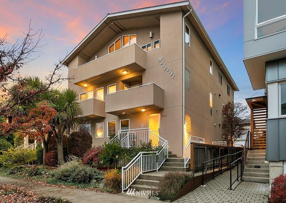 Waypoint condominiums is a boutique complex of only 5 units, strong HOA and low monthly dues.... only $230/month! This south facing end unit provides an abundance of light, features fresh interior paint, brand new kitchen appliances, newer carpet with an open floorplan and 2 decks. In-unit washer/dryer, a dedicated parking space plus a storage unit. Meticulously cared for building, 100% owner occupied & walking distance to everything Ballard offers. No rentals allowed, and pet friendly complex.