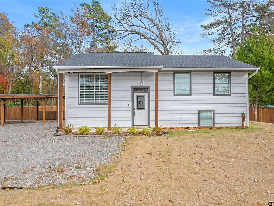 Tastefully updated in 2023, this 4-bedroom, 3-bath split-level home is ideally located near UT Tyler, Tyler Junior College, and the medical district. Set up perfectly for student tenants, multigenerational living, home school, home office. The upper level features an open living, dining, and kitchen area with two bedrooms and a full bath. The lower level offers two additional bedrooms and two baths, plus a utility room with mini kitchenette and access to a covered walk-out porch. Enjoy a large, fenced backyard, covered porch, detached covered patio, 3-car detached carport, circular pull-through drive, and plenty of parking. This move-in-ready home combines thoughtful updates, flexible layout, and an unbeatable location.