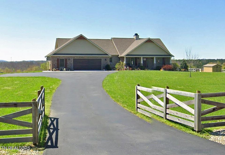 Craftsman style custom built home/mini farm on 3 acres by one of Cumberland County's premier builders, Dean Presson. This home was built by Dean for Dean and his wife so you know it was quality built with precise attention to detail throughout. Minutes from town and Cumberland Mountain State Park. Home features: beautiful mountain views in back, open concept, split bedroom design, covered front and back porches with stamped concrete floors, whole home Generac Generator, tankless gas water heater, Anderson 400 Series windows throughout, Trane high efficiency two-stage nat gas furnace, new window coverings and blinds, new 36x14 workshop with electrical and a 220v outlet, plus an additional new 10x16 shed with electric, newly built chicken coop, cross rail fencing at the front with solar LED lighting at pilasters, new Landscaping at front flower beds, new landscaping and hardscaping at rear along with over 40 roses, new large enclosed custom chicken run and coop, 10x16 garden shed with electrical, new large fenced garden area. Great room has: Nat gas stone fireplace with custom hand-hewn mantle, beam ceiling, newly stained hickory hardwood floors. Kitchen has: Quartz island and countertops with farmhouse sink, maple shaker cabinets with over and under cabinet lighting, s/s appliances, 5 burner nat gas range with double ovens. Master bedroom has: hickory H/W floors, douglas fir vaulted ceiling beams, lots of natural light through large windows. Master bath with new twin leathered granite comfort height vanities, new lights and mirrors, large walk-in closet with custom shelving and large step in ceramic tile shower. Two guest rooms both have full ensuite bathrooms. Garage has: custom Polyaspartic nonslip flooring, custom storage shelves and a wall of garage cabinets. This home has excellent curb appeal and everything you need for comfortable country living close to the city and nearby state park.