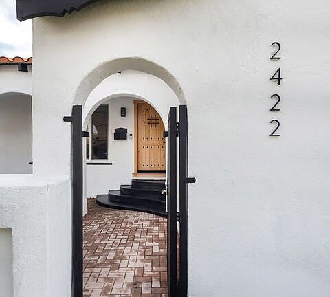 Spanish charm meets modern luxury in vibrant Morningside Park. Welcome to 2422 W 77th St, a beautifully reimagined 3-bed, 2-bath Spanish-style home where timeless architecture blends seamlessly with contemporary design. This residence offers the best of both worlds, classic LA character and a full, high-end remodel. Step inside to find a sun-filled open-concept living and dining area anchored by a statement fireplace and elegant archways. The chef's kitchen features custom cabinetry, quartz counters, stainless appliances, and a large island perfect for entertaining. The primary suite is truly a retreat, extra-spacious with a walk-in closet and a luxurious spa bath that includes a freestanding soaking tub and glass walk-in shower finished with designer tile and fixtures. Two additional bedrooms offer flexibility for family, guests, or a home office. Outside, the owners have elevated the experience even more: the backyard has been newly landscaped with pavers, creating an inviting indoor-outdoor flow ideal for gatherings. The detached 2-car garage has been upgraded with new flooring and finished walls, adding 324 sq. ft. of versatile bonus space perfect for a studio, gym, or creative retreat. Every inch of this home reflects thoughtful craftsmanship from the new roof, electrical, and plumbing to the windows, flooring, and finishes ensuring worry-free living and modern comfort. Located minutes from SoFi Stadium, Hollywood Park, The Forum, and the new Intuit Dome (Clippers Arena), this home sits at the heart of LA's most exciting transformation. Experience the warmth of Spanish style, the ease of modern living, and the energy of Inglewood's renaissance all in one remarkable home.