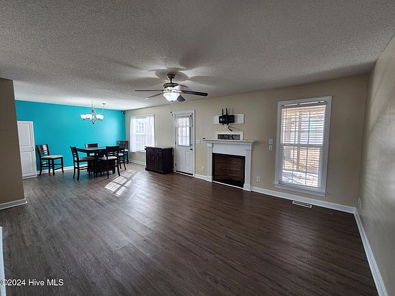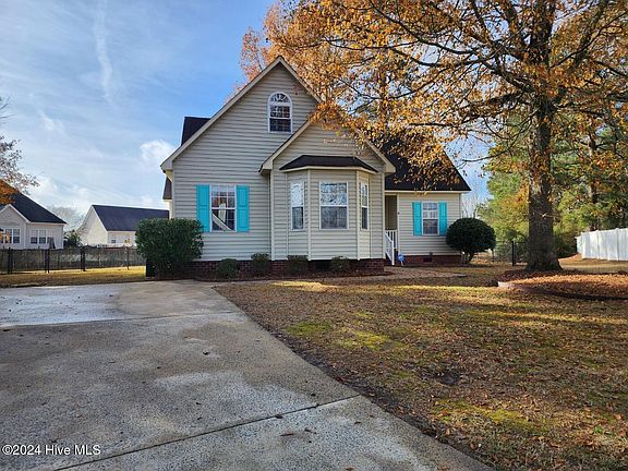 Wedgewood in Winterville Welcomes you with dappled sunlight and a cheerful front porch. Within are 5 Bedrooms, 3 Bathrooms, 2 Living Areas, open Living and Dining Spaces, and a Kitchen that includes a convenient pantry for added storage. The First Floor Primary Bedroom offers a walk-in closet and private en-suite. Finishing out the First Floor's Split Floor Plan are 2 more Bedrooms and Guest bath. Up the steps to the Second Floor holds 2 bedrooms separated by a hallway filled with storage space a 2nd Living area and bathroom. Back down stairs, conveniently off of the Living and dining area is a door that leads to the expansive screened in back porch large enough for activities and charming enough for relaxation. The generous backyard is fenced, holds a storage building and has just enough trees for shade and shenanigans. You will find this home snuggled within a cul-de-sac in Devonshire Subdivision close to everything Winterville has to offer.
