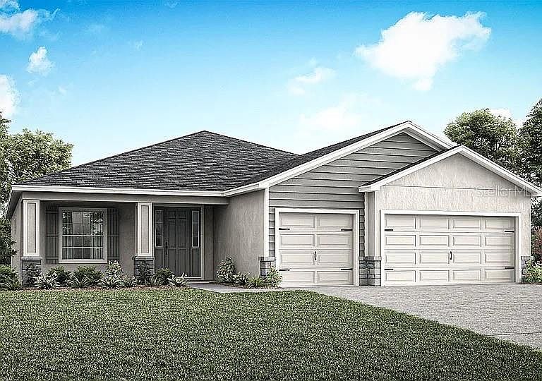 New construction home with 2314 square feet on one-story including 4 bedrooms, 3 baths, and an open living area. Enjoy an open kitchen with Granit countertops, Samsung stainless steel appliances, a walk-in pantry, and a large counter-height bar, fully open to the dining café and gathering room. The living area, laundry room, and baths include luxury wood vinyl plank flooring, with stain-resistant carpet in the bedrooms. Your owner's suite is complete with a walk-in wardrobe and a private en-suite bath with dual vanities, a large, tiled shower, garden tub and a closeted toilet. Plus, enjoy a covered lanai, 3-car garage, custom-fit window blinds, architectural shingles, energy-efficient insulation and windows, and a full builder warranty. “Please note, virtual tour/photos showcase the home layout; colors and design options in actual home for sale may differ. Furnishings and décor do not convey.