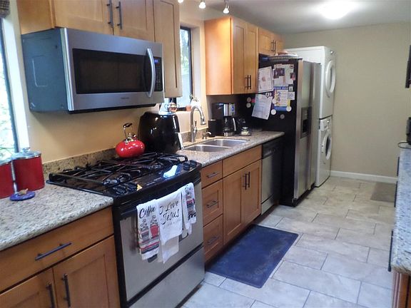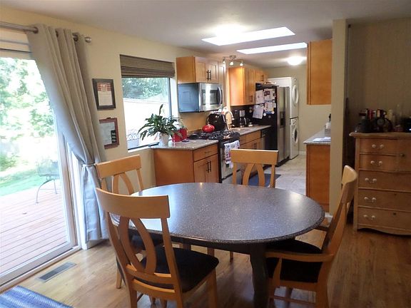 Lovely 3 bedroom one bathroom home on large fenced (1/4 Acre +) lot with newer entertainment-sized deck (1,072 sq ft). All hardwood flooring or tile throughout. No carpeting. Recently updated Kitchen with gas cook top & Stainless Steel appliances. Large front end loading washer & dryer. Wood burning fireplace in living room with insert. Garden shed in back yard and covered carport.