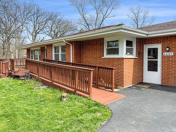 Live your best life in this wonderful all brick 3 bedroom 1 1/2 bath ranch home on almost an acre in unincorporated Crete! Great flowing floor plan with large living room, separate dining room, and kitchen off the side entrance that has access to the back yard for entertaining/grilling/relaxing. Huge peaceful backyard with shed, fire pit area, and bordered by trees to the rear. Giant freshly stained deck on the front of the home with accessible ramp to main entrance. Other accessible features include grab bars, some extra wide doors, and true one level living. Primary bedroom has a half bath attached as "Primary Suite" along with a washer and dryer for convenience. Original location for laundry was in the basement next to the double sink. Can be relocated back to basement, or maybe just have two washers/dryers in home! Full footprint basement doubles your living area. Currently unfinished, but the possibilities of what you can do are endless! Extra long driveway and oversize 2 1/2 car garage with extra nook for work space for all the toys and tools. Whole house generator professionally installed and wired! List of updates/news include all new Windows 2010, well pump 2015, expansion tank 2019, new 1060 gallon septic tank 2012, washer & dryer 2019, recently re-paved driveway, 4 piece water conditioning system. Come see this today and make it yours!