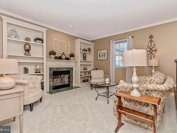 Delightful quad in desirable Worman's Mill! Beautiful open floor plan combines new carpeting with hardwood for lovely visual interest. Main level boasts a step down living room with custom built-ins and gas fireplace, gorgeous dining area with bay window, and a cozy family room overlooking the spacious kitchen with 42" cabinets (w/ turntables), stainless appliances (including 5 burner gas stove) and a huge amount of counter space! As a bonus, there is also a den with sunny windows and door to your private patio! Upper level gives you the ability to have two master suites, one with a bay window and super bath with seated shower and jetted tub, and the other with a sitting area that is perfect as a work place or library! There is also a full unfinished basement with rough-in should you want to expand your living area, and a one car detached garage with opener. Newer HVAC systems, water heater and roof in 2019, as well as new carpeting, means you can move right in with no worries!