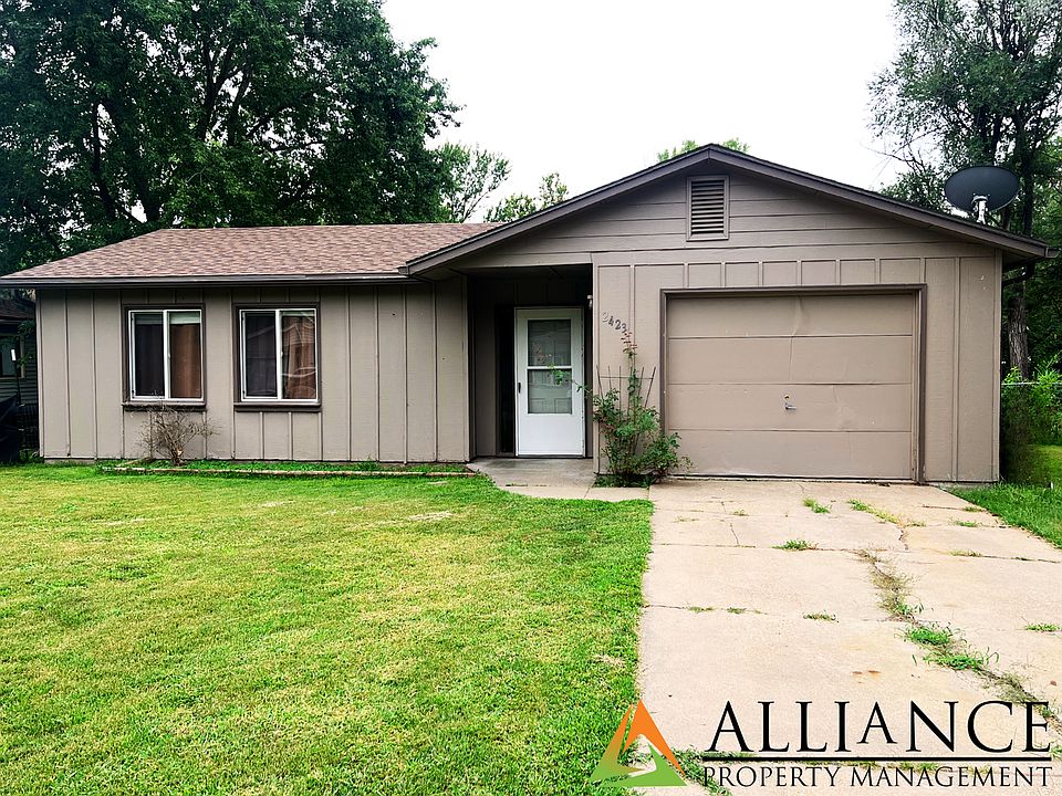 Spacious 3 bedroom, 1 bathroom home in East Manhattan! Large kitchen open to dining area. Great sized living/family room. Deep single car garage with plenty of room. Spacious master bedroom with sliding doors out to patio in backyard. Large backyard with shaded trees. Close to Northview Elementary School.