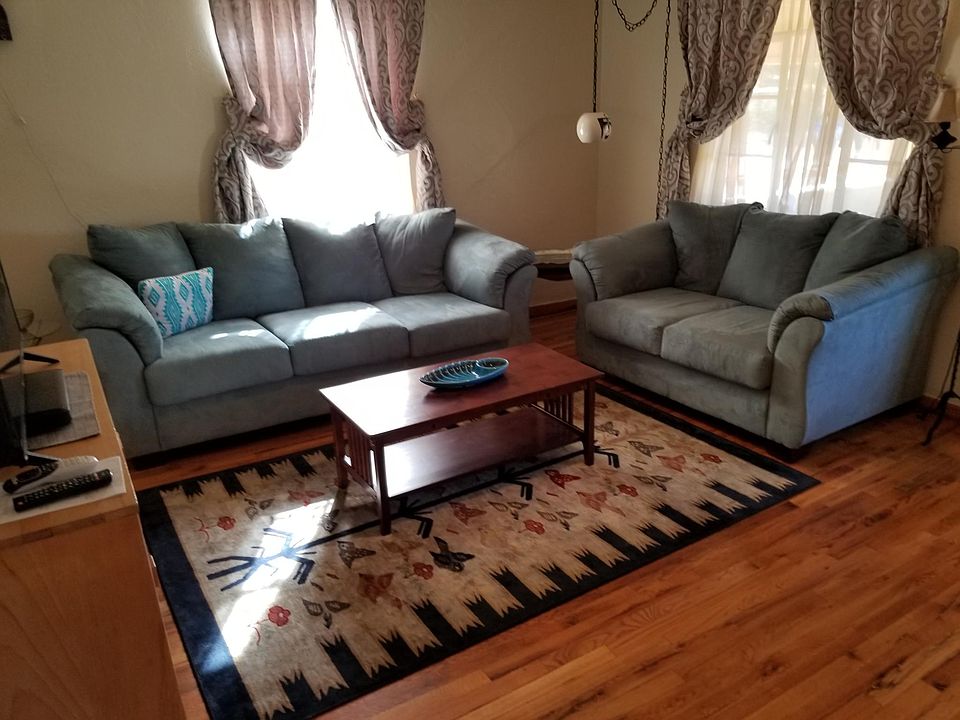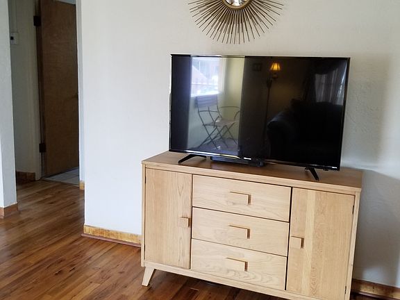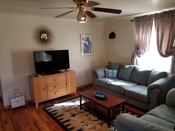 Old Town! New Casa! Interior Designer's fully furnished Santa Fe style @ Old Town home. The property is in a fenced cactus garden with off street parking. The true adobe features charming designer high end furniture with mid-century modern and vintage pieces. The chef's kitchen has stainless steel appliances that include stack washer/dryer, refrigerator, dishwasher, range, coffee maker, toaster, dishes, glasses, pots, pans, and kitchen wares. The living room has a flat screen Sat. T. V.& Wi-Fi included in the rent. The property is a short walk to Old Town Plaza, Bio Park, El Vado, ABQ Bio Park- Botanical Garden- Zoo and the Bosque. This convenient location is minutes to all major Downtown hospitals, Intel, the Film Studios, and Amazon via I-25 and I-40. Call, text or email us for a 3-D digital walk thru or private showing. There is a 90 day minimum and no maximum stay.