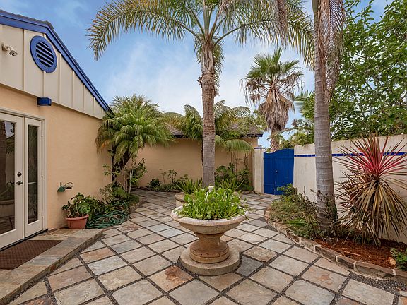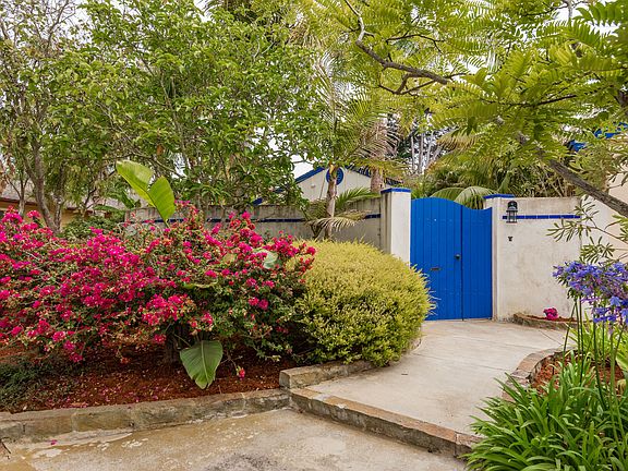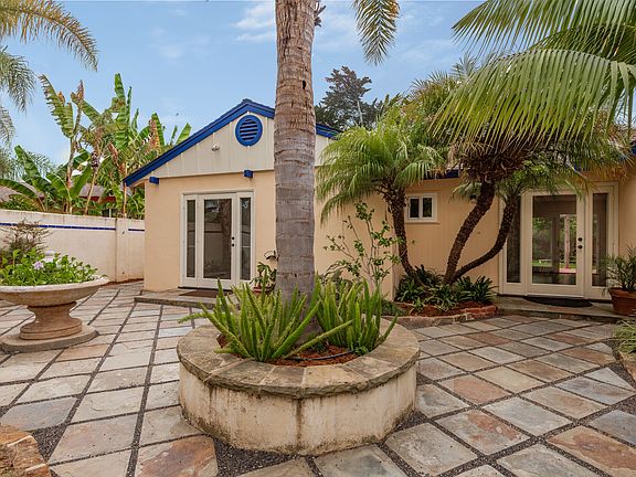Exceptional Mesa home located on a quiet street 1 block from Mesa Lane Beach! This charming 4 bedroom 1.5 bath home features a large master, beautiful entry courtyard with fountain, a covered brick patio for relaxing in the lush/park-like backyard. The kitchen features newer cabinets, appliances and offers a casual breakfast dining area. The formal dining room looks out through the rear yard while the master bedroom is complete with lovely french doors opening to your formal gardens and private patio! Newer paint, Camelot carpet, refrigerator, roof 2014 , tankless water heater, and a 1-3 block walk to beaches, Douglas Family Preserve, schools and shopping. This beach home is perfect for all and move-in ready!