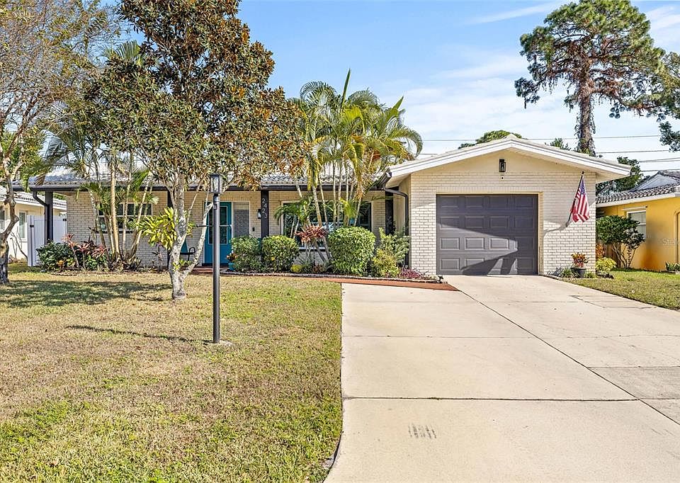 Discover this charming 2 bedroom, 2 bathroom pool home in the desirable Greenbriar Community, just minutes from vibrant Dunedin. This solid block home sits high and dry with no flood insurance required and offers both comfort and peace of mind with hurricane-impact windows, a 2022 Air Conditioner unit and 2023 Water heater. Inside, you will find spacious layout that includes an oversized flex room-perfect as a second living area, office, gym or bonus guest space. Step outside to your own backyard oasis, ideal for enjoying morning coffee, relaxing with an evening beverage, or taking a refreshing dip in the pool under the Florida sky. Greenbriar features an incredibly low annual HOA of just $210 per year, which includes access to the clubhouse, a heated pool, a fitness center, library, game room, and shuffleboard courts- all within a friendly well kept community. This is the perfect opportunity to enjoy the Florida lifestyle in a well -located neighborhood close Dunedin, the beaches, shopping and dining. Make this your new Home Sweet Home!