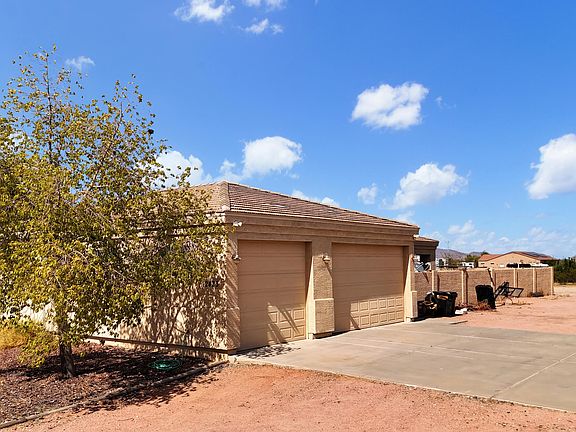 A Rare Opportunity in West Buckeye! Situated on 2.35 acres with NO HOA, this unique Single story 3 bedroom plus den/office property offers the space, freedom, and lifestyle you've been searching for. The open concept layout features soaring ceilings, a spacious living area, and a family/dining room that flows into a beautifully appointed kitchen with knotty wood cabinetry, granite countertops, and an island with breakfast bar—perfect for entertaining. The private primary suite includes a cozy sitting area, walk-in closet, jetted tub, separate shower, and dual sinks. Two additional bedrooms are connected by a Jack & Jill bath with a second jetted tub. You'll also find a large laundry room with built-in cabinets and a utility sink. Step outside to a full-length covered patio and a HUGE 6-car tandem garage ideal for toys, trailers, or workshop space. With over two acres of land, there's room for horses, RVs, or even your dream backyard oasisall with stunning mountain views. Don't miss this chance to own a piece of the Arizona lifestyleopportunities like this are hard to find!