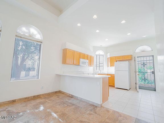 Welcome to this charming 2-bedroom, 2-bath townhome located in the gated Mona Lisa Village community in Northwest Tucson. This single-level home features an open and practical floor plan with tile throughout. You'll have peace of mind with a new roof and water heater. The kitchen includes ample counter space and cabinetry, flowing easily into the dining and living areas for comfortable everyday living. The spacious primary suite offers a full bath and generous closet space, while the second bedroom provides flexibility for guests or a home office. Enjoy two private covered patios ideal for relaxing outdoors. Community amenities include a pool, spa, and beautifully maintained grounds. Conveniently located near shopping, dining, and medical services, this home offers low-maintenance living in a desirable area.