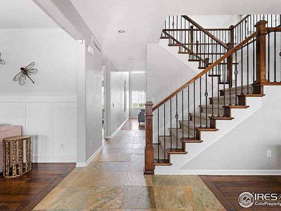 Comfort and style collide in this Tallyn's Reach home. Nestled on over half an acre, this home boasts a prime location backing to serene open space, providing breathtaking Front Range views. A covered front porch welcomes residents inward to a functional layout drenched in streams of natural light from expansive windows. Two-story ceilings draw the eyes upward in a spacious living room anchored by a cozy fireplace. Delight in crafting recipes in an open kitchen featuring a center island, stainless steel appliances, a breakfast bar and a butler's pantry w/ a beverage fridge. Four bedrooms include a sizable primary suite boasting a 5-piece bath w/ a large walk-in shower and a soaking tub. Entertain effortlessly in a finished, walkout basement flaunting a media room w/ built-ins and surround-sound speakers, a wet bar and plenty of flex space. Beautiful landscaping surrounds a backyard oasis showcasing a stone patio, a built-in gas firepit, an in-ground trampoline and a basketball court.