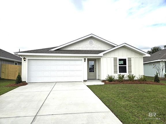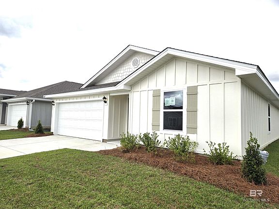 The Porches is a peaceful community nestled just off Old Foley Road in Elberta. This location offers the perfect balance of tranquility and convenience, with close proximity to OWA, Tanager Outlets, dining in Foley, and the beautiful beaches of Gulf Shores. The Aria floor plan is a spacious 1,641 square foot open concept layout featuring three bedrooms and two bathrooms. The living room flows seamlessly into the kitchen and dining area, creating an open and welcoming space. The kitchen is equipped with granite countertops, white cabinets, a large island, and stainless-steel Whirlpool appliances, including a stove, microwave, and dishwasher. The primary bedroom offers an abundance of space including an ensuite with a double vanity, a 5-foot shower with a glass door, a garden tub, a private water closet, and a walk-in closet. This thoughtfully designed floor plan offers both comfort and functionality including vinyl flooring throughout. Exterior features include Hardie Board cement siding and the lovely, covered porch is accessible through a door off the dining room. The price includes termite coverage for the first year and fabric shields for the windows and doors. This home is being built to Gold FORTIFIED Home™ certification standards, which may provide savings on homeowners insurance. (See Sales Representative for details.) Additionally, the home features our Home is Connected? Smart Home Technology, which includes a control panel, doorbell, smart code lock, two smart light switches, and a thermostat, all controlled by a single app. (See Sales Representative for complete details on these smart home features.) Buyer to verify all information during due diligence.