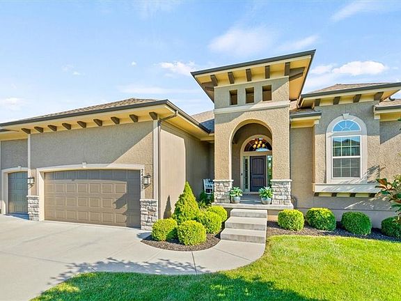 Absolutely stunning and like new reverse 1.5 story in gorgeous Cedar Creek - The Crossings! So many upgrades in an incredible location.The spacious and open main level features gorgeous engineered hardwoods, a stunning floor-to-ceiling wooden fireplace mantel in the beautiful great room, and an entertainer's absolute dream kitchen! Gleaming granite countertops, tons of cabinet space, a gigantic walk-in pantry and a huge island offer so much room for cooking, baking, and enjoying company. A coveted main floor primary suite means your private oasis is just a few steps away when you walk in the door - a soaring tray ceiling, huge ensuite bath with two separate, sprawling vanities, jetted soaking tub, and an incredible shower for two with multiple shower heads ensure you will never want to leave your room! And just wait until you see the walkout lower level! You will love the full second living room perfect for your dream entertainment setup, with beautiful engineered hardwood flooring, soaring windows, recessed lighting, a second dining area and and kitchenette. Host game nights, watch the Chiefs, enjoy cocktail hour, and so much more with this incredible space. And we haven't even gotten to the backyard yet - a beautiful two-tiered and covered deck with a fireplace that looks out over the large, level, fenced lot. What more could you ask for? Just to make it yours!