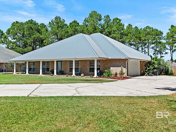 Paradise in paradise, just minutes to the white sandy beaches of Orange Beach and Gulf Shores! The vibe is peaceful serenity, nestled at the end of a quiet cul-de-sac and bordered by private woodlands, the setting offers both privacy and natural beauty. A resort-style pool anchors the outdoor living space, fully enclosed within a brand-new screened lanai. The covered porch creates an inviting area for entertaining, alfresco dining, or simply enjoying the coastal breeze. The pool also features a newly installed pump motor, ensuring years of enjoyment. Inside, the kitchen is a chef’s dream with top-of-the-line stainless steel appliances. A dedicated gas line was added to accommodate the stunning new 5-burner range equipped with air-fryer, dehydrator, and advanced cooking settings, finished with a sleek double-door design. The space offers multiple dining options, including a breakfast bar, island seating, a sunlit breakfast room, and a formal dining room. With doors for privacy, that dining room can also transition into a home office, studio, or library. The great room is designed for both comfort and sophistication, boasting tall tray ceilings and a cozy wood-burning fireplace. The primary bedroom suite offers generous proportions and a spa-like ensuite bath, featuring a garden tub, separate shower, private water closet with linen storage, and a spacious walk-in closet. Outdoors, a large double gate at the top of the driveway provides convenient access for RVs, boats, or additional vehicles while still preserving plenty of backyard space for entertaining or play. A 24’ x 12’ workshop, wired for electricity, sits at the rear of the lot, with additional storage for lawn equipment. Unused plumbing nearby opens the door for future possibilities, whether you envision a poolside bath house, outdoor kitchen, or a custom-designed entertaining space. Other details include a metal roof, fresh paint, and several upgrades you'll enjoy. Call today for a private viewing! Buyer to