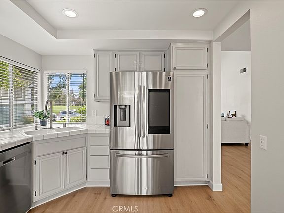 TURN-KEY SINGLE-LEVEL HOME ON CORNER LOT WITH VALENCIA GOLF COURSE VIEWS! This spacious two-bedroom, two-bathroom Fairways home offers over 1,050 sq. ft. of interior living with modern touches and renovations. With soaring ceilings at the entry, you will enjoy the bright and open living room, complete with a cozy fireplace. Adjacent to the living room is a separate dining area with a view of the patio. The kitchen features space for a breakfast table, a sliding glass door to the private patio, freshly painted cabinetry, all stainless steel appliances that include a large capacity Samsung refrigerator, and a brand new Whirlpool dishwasher. Brand new flooring, including luxury vinyl with gorgeous baseboards, has been installed throughout the home. Additionally, the full interior has been recently painted. Other features include an upgraded HVAC system, upgraded plumbing, and recessed lighting. Both bathrooms have updated light fixtures, decorative mirrors, a new vanity, and the ensuite has stunning new vinyl flooring. Enjoy the convenience of a large two-car direct access garage, where the included full-size side-by-side washer and dryer are located. Take pleasure in the outdoors on the peaceful and lush patio, which boasts an upgraded wood cover, sturdy white vinyl fencing, turf, and lovely potted plants. Easy access to the community pool, spa, nearby paseo trail, and popular Valencia amenities such as Meadows Park. Centrally located to all that Santa Clarita has to offer, this location is also ideal due to its proximity to the I-5 freeway. Schedule your tour today!