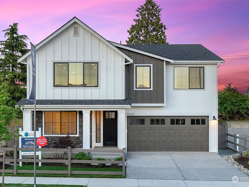 Beautiful East-facing 3020 plan at Skyline offers 5 bedrooms and 2.75 baths including main floor bed/bath. Skyline is a community of 47 single family homes at an unbeatable location minutes from downtown Woodinville shopping & wineries, freeway access, yet sits tucked away in a quiet residential community with its own community park, open spaces, and territorial views. All this served by the acclaimed Northshore school district. Beautiful interior design and exceptional floor plans will include electric car charging pre-wire, air conditioning, landscaped & fenced yards, garage door openers and more! This community has a site registration policy. Lot 26 offers a mid-July 2023 move-in.