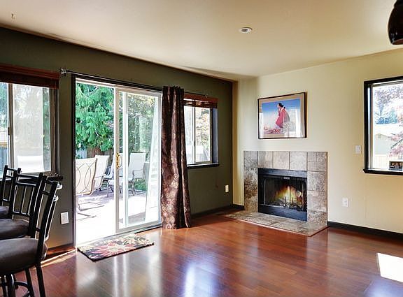 This 3 bedroom, 2 bath, 1,426 square foot townhome offers the best of both worlds. Low maintenance townhome-style living with a fantastic yard for your enjoyment! Conveniently located in the Bothell/Mill Creek area and nestled on a private drive. Step through the front door and youre immediately impressed with style and class. The front living and dining space offer high vaulted ceilings with large windows that allow natural lighting to pour in; something all Northwest residents have come to appreciate. Designer paint colors and easy maintenance, gleaming laminate floors add the perfect touch. The living room flows naturally into the formal dining room, which boasts an updated hanging light fixture and plenty of wall space for your art or other delights. The dining area is roomy enough to allow for extra furniture such a buffet or china hutch. The huge kitchen is any chef's delight, from novice to gourmet. The kitchen looks into the family area for a great room feel. You will find that there is abundant cabinetry and counter space, plus an added bonus of an eating bar made for three. Two hanging pendant lights and a stylish track light add beautiful ambiance and brightness to this space. A large window over the double basin sink looks into the backyard. This room is complete with stylish tile floors. The adjacent family room is cozy and pleasant, with laminate flooring and a gas fireplace with tile surround. There's also a sliding glass door that serves as your passage to the gorgeous (and private!) backyard. The backyard is your own oasis. It's lush, green and fully fenced. There is a huge entertainment-sized back deck to extend your outdoor living space. Youll also find lots of green grass for fun and play and a handy garden shed to store all your lawn care needs and more! The main floor also features convenient powder room. The master suite is spacious and relaxing with spa-like colors and a ceiling fan to keep you cool on warm nights. Youll also appreciate the full en-suite bathroom. Both additional bedrooms are quite spacious with large closets and plush wall-to-wall carpet. A second full bathroom is also located here for convenience to the guest bedrooms. This well maintained duplex-style townhouse is minutes to the fabulous Mill Creek Town Center, I-5, 405 and Bothell's tech corridor. Great schools, great neighborhood and several parks nearby.
