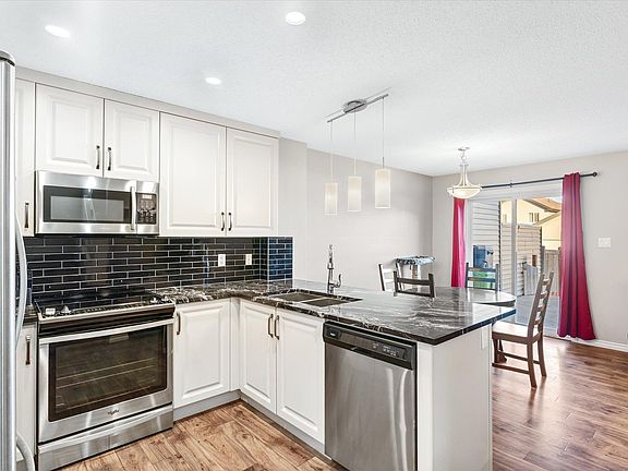 This quality built half duplex features a very functional floor plan that offers 1403 sqft of living space, 2 Bedrooms, 3 bathrooms, and a single car attached garage. The feature of this home is the updated kitchen.The modern chef package includes: granite counter tops, stainless steel appliances, cabinets extended over the fridge and full height to the ceiling and an extended eating bar. The main floor also includes a living room with large windows, an eating nook just off the kitchen, and access to the oversized backyard deck with a 2 pc. bathrm conveniently located close to the foyer and garage access. You'll love retreating to the upper loft that can be a tv rm or office then the cozy master suite complete with an ensuite and a walk-in closet with an additional bedroom and another ensiute bathroom complete the upper level. All the luxury with a fenced backyard, single attached garage and a concrete single drive way. The basement is ready for completion with a rough in bathroom and one large window