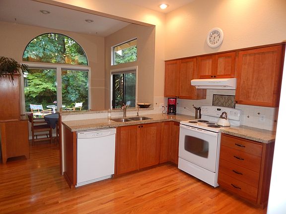 Remodeled home in Camden Highlands has unmatched peaceful setting.Hardwood floors, sunny living room with fireplace, vaulted ceilings, updated kitchen with cherry shaker cabinets, slab granite counters, eating area & skylights.Lower level has family room with fireplace, bedroom, bath & laundry room with storage. Over sized master suite with 5 pc bath, walk in closet & vaulted ceilings.Entertainment size deck, fenced yard, garden space, new interior paint, carpet & roof (2014).Northshore schools.