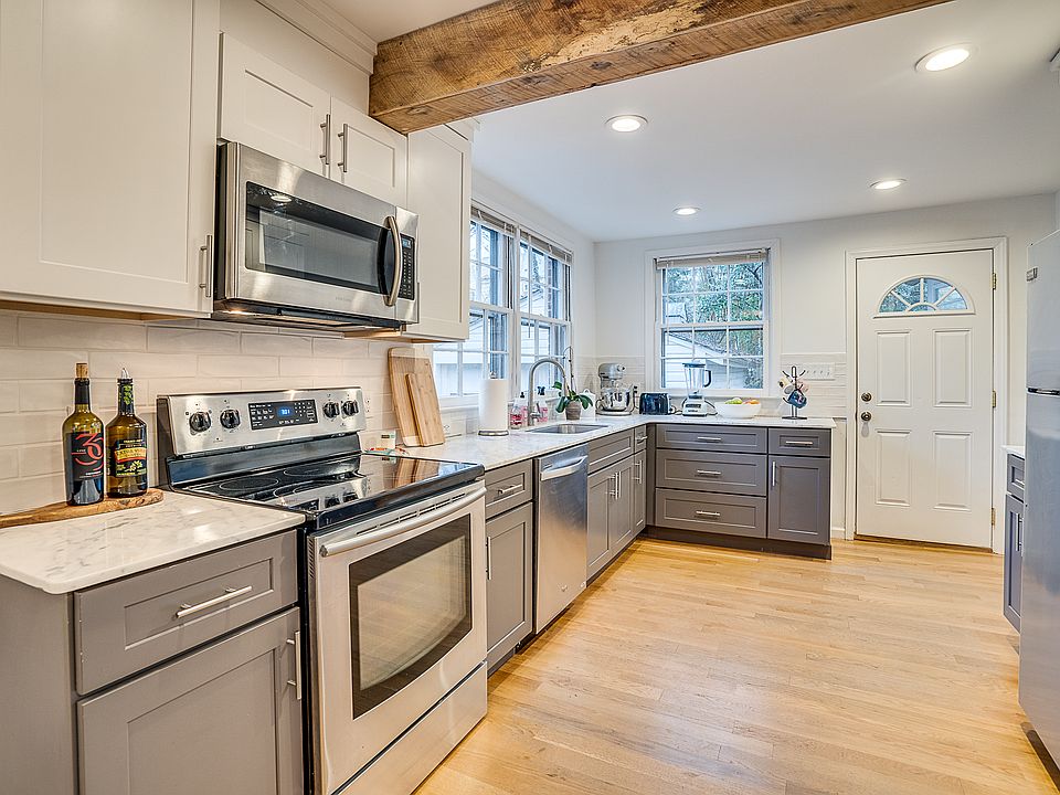 In Taos, blue doors are on nearly every house as it is said the color imbues warmth + friendliness. This 1946 brick Min. Traditional is nothing short of amiable + welcoming inside + out. You'll delight in a bright + open layout boasting a reno'd, modern KIT + 2 full baths, HRDWD floors that hold this homes years of memories. Fenced backyard w/ a detached garage await your imagination (band practice?). Bike downtown in 12 min. on the Ellerbee Creek Trl. Meet neighbors + exercise Spot @ the NG dog park.