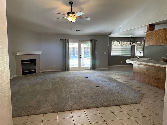 Southeast Visalia home move in ready! Open floor plan with fireplace in the large living room, indoor laundry, and tile flooring in the entry, kitchen and breakfast nook. The large master room features a walk-in closet, along with dual sinks and tile counters in the bathroom. Indoor laundry room next to the kitchen with washer and dryer included. Large landscaped back yard with plenty of shade and a covered patio area. Walking distance to Annie R. Mitchell Elementary. Sorry no pets. (updated photos coming soon)
