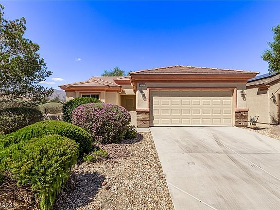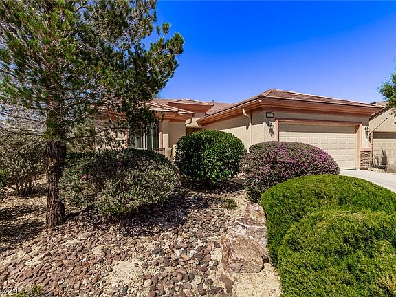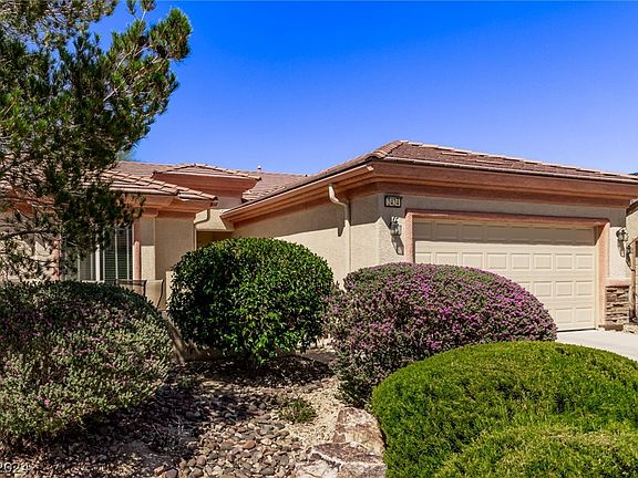 Located in the beautiful 55 and over Sun City Aliante This lovely 2 bed, 2 bath residence now on the market is for you! Nestled on a premium corner lot, this gem boasts a charming facade w/stone accents, easy-care landscape, a cozy front patio, and a 2 car garage! Inside you will find a spacious dining & living w/tile flooring and designer palette throughout. The fabulous kitchen is equipped w/everything the aspiring chef needs, ample wood cabinetry, granite counters, a pantry, stainless steel appliances, recessed lighting, and a two-tiered island. Relax and unwind in the primary bedroom, showcasing soft carpet, a walk-in closet, and a private ensuite w/dual sinks. also including a cozy fully fenced in backyard w/a covered patio where you can spend quality time w/friends and loved ones, this home has it all! Act now before it's gone!