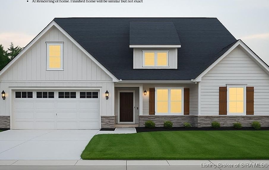 Introducing The Belle by ASB Homes — a quality-built 4-bedroom, 2-bath home designed with comfort, style, and efficiency in mind. Perfectly located on the edge of Sellersburg and Memphis, you’ll enjoy being just minutes from the prestigious Fuzzy Zoeller Golf Course, Interstate 65, and downtown Sellersburg. With nearly 1,800 sq ft of thoughtfully planned living space, this home features durable LVP flooring throughout the main living areas and an impressive great room with soaring 10’ ceilings. The open-concept layout begins with a true foyer entry and flows seamlessly into the kitchen and dining spaces, ideal for entertaining. The kitchen is a chef’s delight with granite or quartz countertops, a breakfast bar, and an inviting eat-in dining area. The luxurious owner’s suite boasts a walk-in closet, dual vanity, and private bath with separate shower. Three additional bedrooms provide versatility, including a large 4th bedroom/bonus room above the garage—perfect for guests, office, or private retreat. This Energy Smart Rated home ensures year-round efficiency and comes with the peace of mind of an RWC build warranty. Experience the craftsmanship and thoughtful design only ASB Homes can deliver!