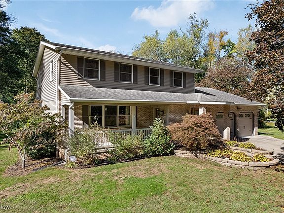 Welcome to this beautifully renovated colonial in a desirable Uniontown neighborhood within the Green Local School District. Set on over half an acre, this 3-bedroom, 2.5-bath home offers 2,102 sq. ft. of thoughtfully renovated living space, plus a partially finished basement for added flexibility. Step through the bright, inviting entryway and notice the attention to detail throughout–new stair thresholds, elegant iron-and-wood banisters, fresh neutral paint, and modern lighting. The open floor plan connects the kitchen, dining, and living areas—ideal for entertaining or relaxing at home with the family. The kitchen features solid wood cabinetry and updated stainless steel appliances, while the family room charms with wood ceiling beams, a brick fireplace with built-ins, and French doors leading to the back deck. Upstairs offers three bedrooms, two full baths, and a convenient laundry room with built-in storage. Enjoy multiple outdoor living spaces: a front porch, brick patio, and raised deck with gazebo overlooking a private, fenced-in yard with mature trees and a fire pit. Major updates include a new furnace, central air, and tankless water heater (2025), ADT security system (2024), LVT flooring, and deck improvements (2020). A smart thermostat adds modern convenience. Stylish, move-in ready, and full of charm– this home truly has it all!