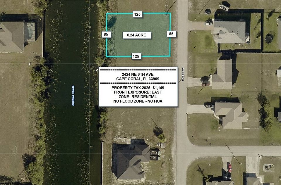 Beautiful waterfront lot located in the fast-growing NE Cape Coral area. Enjoy peaceful canal views and the perfect setting to build your future home with room for outdoor living, a pool, or a custom design. This homesite offers convenient access to Del Prado Blvd, Kismet Pkwy, schools, shopping, dining, and everyday amenities. Surrounded by newer homes and ongoing development, this location is ideal for both homeowners and investors looking to secure a quality waterfront property in a rapidly developing neighborhood. Don’t miss this great waterfront opportunity!
