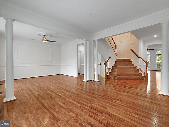 Accent columnsWaterfall staircaseCustom closetDouble vanitiesFenced rear patioRecessed lightsWood floors