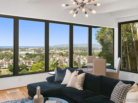 Panoramic view of the Pacific, over to Mission Bay, across to Kate Sessions Memorial Park to the SeaWorld Firework Shows make this home extraordinary! The water views from Ocean Beach over to Bird Rock will never be obstructed. This unique home will seduce you w/ coastal breezes, beautiful Sunsets & after sunset the show continues w/ twinkling city lights. Modern curb appeal welcomes you in to enjoy views from all levels. Entertain in the spacious Living Room w/ cozy fireplace & glass wall to take in the view. Bright & light from morning till evening, this updated home has open kitchen that flows to private, outdoor patio beautifully landscaped for al fresco dining. New SS appliances, 5-burner gas range, granite counters & freshly painted cabinets. Multiple decks so you can enjoy an indoor/outdoor lifestyle. Take in WNW Views from Primary suite featuring huge windows, fireplace & stunning ensuite bath w/ stylish finishes. Soak in your tub while watching the sunset! Big 2nd Bdrm w/ new ensuite bath. Family Rm has water views w/ access to deck & backyard. 2 bdrms lower level, one w/ private view balcony, perfect for office, fitness, guests or teenager suite. New luxury bath w/ floating vanity & towel warmer. Create your dream backyard oasis w/ a view… room for a pool, hot tub, fire pit, an outdoor kitchen, accessory dwelling unit.