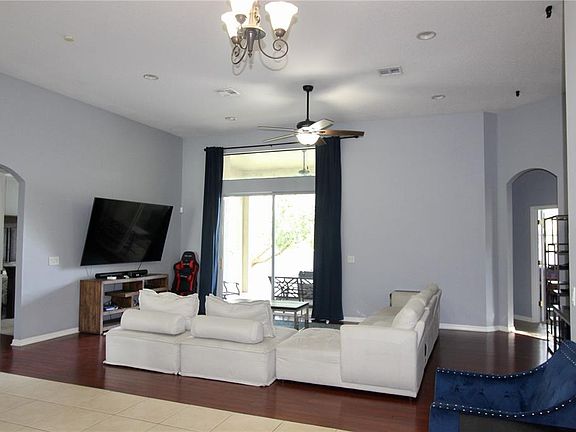 GATED COMMUNITY!! Great Alexandria Place Community! Enter the home with SOARING CEILINGS throughout. AMAZING TRIPLE SPLIT FLOOR PLAN! Four large bedrooms with a triple split layout including a primary bedroom suite with a primary bathroom, and an additional large flex space located at the front of the home that can be used as a home office, studio or playroom. The primary bedroom has a tray ceiling with extra seating area. The primary en suite bath has dual sinks, separate shower stall and large soaking tub, perfect for unwinding at the end of a long day! Kitchen has tons of cabinet and counter top space, pantry, and breakfast bar. Stainless Appliances included as well as washer and dryer. Very spacious Dining Room great for family gatherings. The home is situated on a well-manicured lot and the fully vinyl fenced backyard is a wonderful setting for relaxing or hosting, with conservation and park views. Short walk to the playground. HOT TUB included. Roof 2021. 3 Car Garage. ALL FURNITURE are available for purchase.