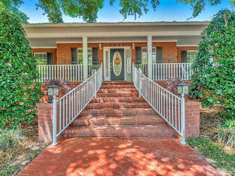 Experience luxury living at its finest in this custom-built oasis nestled on 1.7 acres of lush land. Marvel at the grandeur of remote-operated double gates as you enter the property, enclosed by a striking brick and aluminum fence for added security and convenience. Walk along the meticulously landscaped gardens illuminated by charming lights to the sprawling 1317 square feet of covered porches, ideal for outdoor relaxation and entertainment. Inside you'll discover the epitome of elegance in the formal living area, featuring gleaming hardwood floors and a cozy fireplace framed by majestic 15-foot columns. Transition seamlessly into the gourmet kitchen with two pantries, tile flooring, granite countertops, and custom sliding glass doors offering unobstructed views of the sparkling pool. Entertainment awaits in the expansive bonus room, complete with a pool table (that's included) and wood-burning fireplace. Retreat to the primary suite boasting his and her closets, a luxurious primary bathroom, and tranquil views of the lush yard. Throughout the home, attention to detail abounds with 8-inch trim, vaulted ceilings, crown molding, plant ledges, and recessed lighting, creating an ambiance of refined elegance. Outside, the enclosed pool area serves as a private retreat enhanced by a screened enclosure and accessible via three glass sliding doors. Adjacent to the pool area, discover the ultimate DIYer's haven—a 30X40 insulated metal building equipped with a stationary lift, roll-up doors, foam insulation, and central air, offering endless possibilities for hobbyists and enthusiasts alike. Updates including a new roof in 2021, a Bosch AC unit installed in 2021, new countertops throughout, new pool liner, new carpet, and upgraded landscaping with a state-of-the-art sprinkler system ensure both beauty and efficiency. Don't miss the opportunity to make this exceptional property your own. Schedule a showing today and step into a world of luxury living.