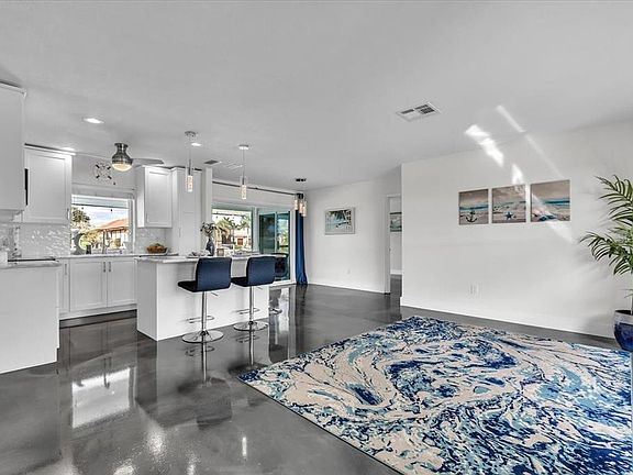 Stunning Coastal Contemporary with Sailboat Access | Punta Gorda Isles A true boater’s paradise in an exceptional location. Ideally positioned on the second canal to open water, this premier 95-foot waterfront homesite features a city-maintained seawall and a 30’ x 8” concrete dock. With no fixed bridges and effortless access to Charlotte Harbor, the Peace River, and the Gulf of America, this is waterfront living without compromise—perfectly suited for yacht and all boat owners. Northwest backyard exposure delivers breathtaking sunset views. Enjoy resort-style outdoor living with a shimmering pool, covered lanai, and lush tropical landscaping—ideal for entertaining and relaxation. Beautifully remodeled and thoughtfully upgraded three-bedroom, two-bath residence, where a sense of calm immediately welcomes you. Bathed in natural light, the open and airy layout is designed to capture breathtaking water views from every room, creating a seamless connection between indoor living and the tranquil surroundings. Enhancing both comfort and quality of life, the home is equipped with a premium water softening and filtration system, delivering exceptional water for both drinking and bathing. Step inside and be welcomed by striking metallic epoxy floors that flow throughout the home, setting a tone of modern elegance. The fully reimagined kitchen is a true showpiece, adorned with exquisite quartzite countertops, custom white Shaker cabinetry with abundant drawer storage, a beautifully designed pantry, and an expansive island. Premium stainless steel appliances, a built-in wine refrigerator, and generous counter space complete the space, hurricane impact sliders, all thoughtfully integrated into a seamless open-concept design. Ideal for sophisticated entertaining or effortless everyday living, this home offers comfort wrapped in refined style. The primary bedroom ensuite offers direct access to the lanai, showcasing breathtaking water views and glowing sunset vistas. A generously sized walk-in closet with custom organizers complements the serene retreat, while the spa-inspired bath features a rain shower, dual vanities topped with quartzite, abundant storage, and a dedicated linen cabinet for effortless elegance. Tucked away on a private cul-de-sac, this home offers a quiet, secure setting with a strong sense of community. Mature landscaping, an oversized 2.5-car garage, a durable metal roof, and a transferable flood insurance policy provide exceptional value, security, and peace of mind. From golden sunsets on the lanai to effortless days on the water or poolside, this home delivers your own private coastal paradise. An exceptional opportunity to own a Premier Waterfront residence within one of Southwest Florida’s most prestigious communities. NO HOA! Dream Location! Profitable Short Term Rental! Minutes to Charming Fisherman's Village and Historic downtown Punta Gorda, Shopping, Restaurants, Weekend Farmers Market, Parks, Pickleball, Yacht Clubs, Golf Clubs and more! Schedule your private tour today.