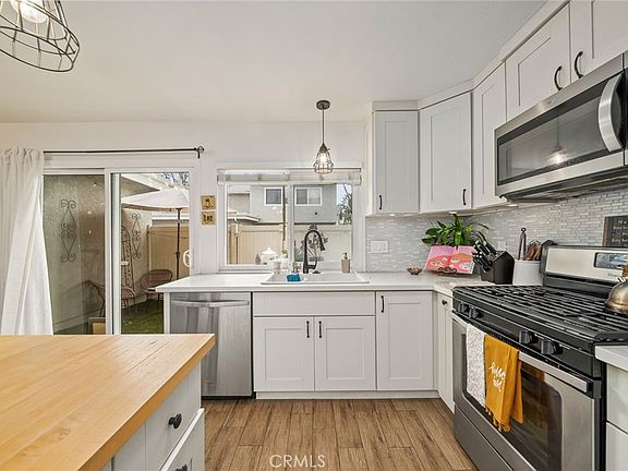 Welcome to this fully renovated home in the highly desirable South Coast Metro area. This 3 bedroom 1.5 bathroom home boasts vinyl flooring, updated central HVAC and modern finishes throughout. Step inside and be met by a cozy living room offering a great space for relaxation. Nestled in the hall is a half bath, perfect for guests. Beyond it are the open kitchen and adjoined dining area which offers natural light via a patio slider. White shaker style cabinets, designer lighting fixtures, glass tile backsplash, quartz counters, and a butcher block peninsula complete with a breakfast bar are some of the amazing features found in the kitchen. Tucked away in the kitchen is the shared pantry + laundry closet with storage shelves. Enjoy a quaint paved backyard with a small artificial turf area. The second level showcases the master bedroom, two guest bedrooms, and a shared full bathroom. The garage features storage cabinets with epoxy flooring. Tranquil and well-maintained, the HOA community has great amenities such as a basketball court, a large sparkling pool, and a relaxing jacuzzi.